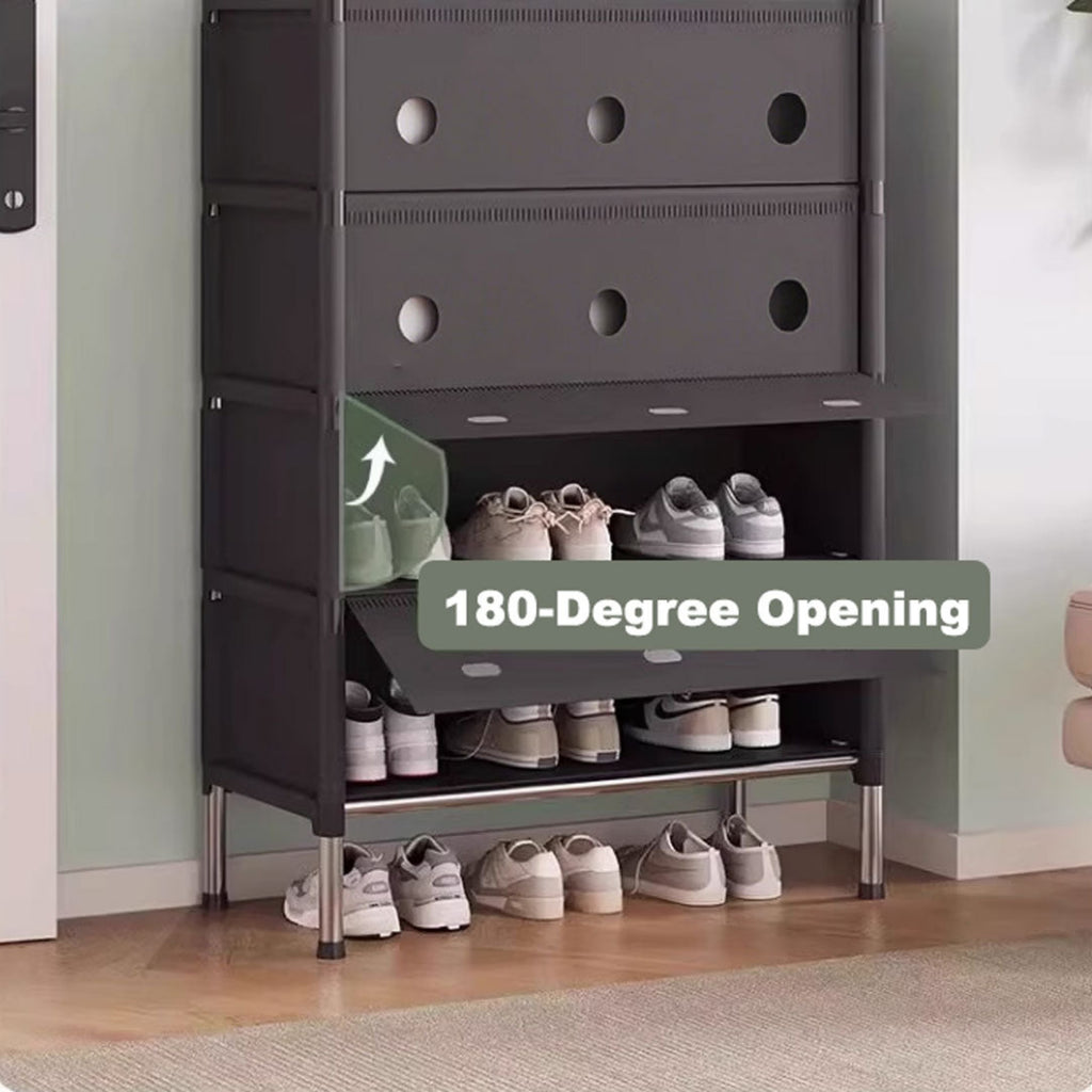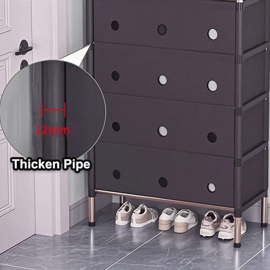 A perfect storage solution for the person who has too many shoes. Uncluttered your life and free up that wasted space into a neat tidy tower of shoes and be the envy of everyone! Picking out a shoe to fit your outfit is so much easier and convenient - with all your shoes conveniently located in one place, you'll never have to go looking for missing shoes ever again! The non-slip shelves are fully adjustable to suit various shoe sizes, large or small. Made out of sturdy steel tubes and resin siding connectors, this lightweight shoe rack and be built into any number of levels as needed.
