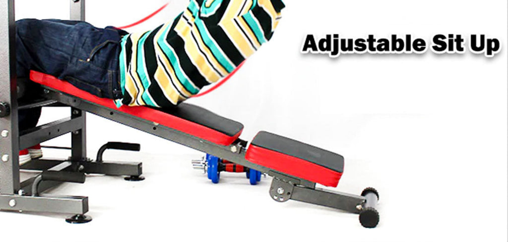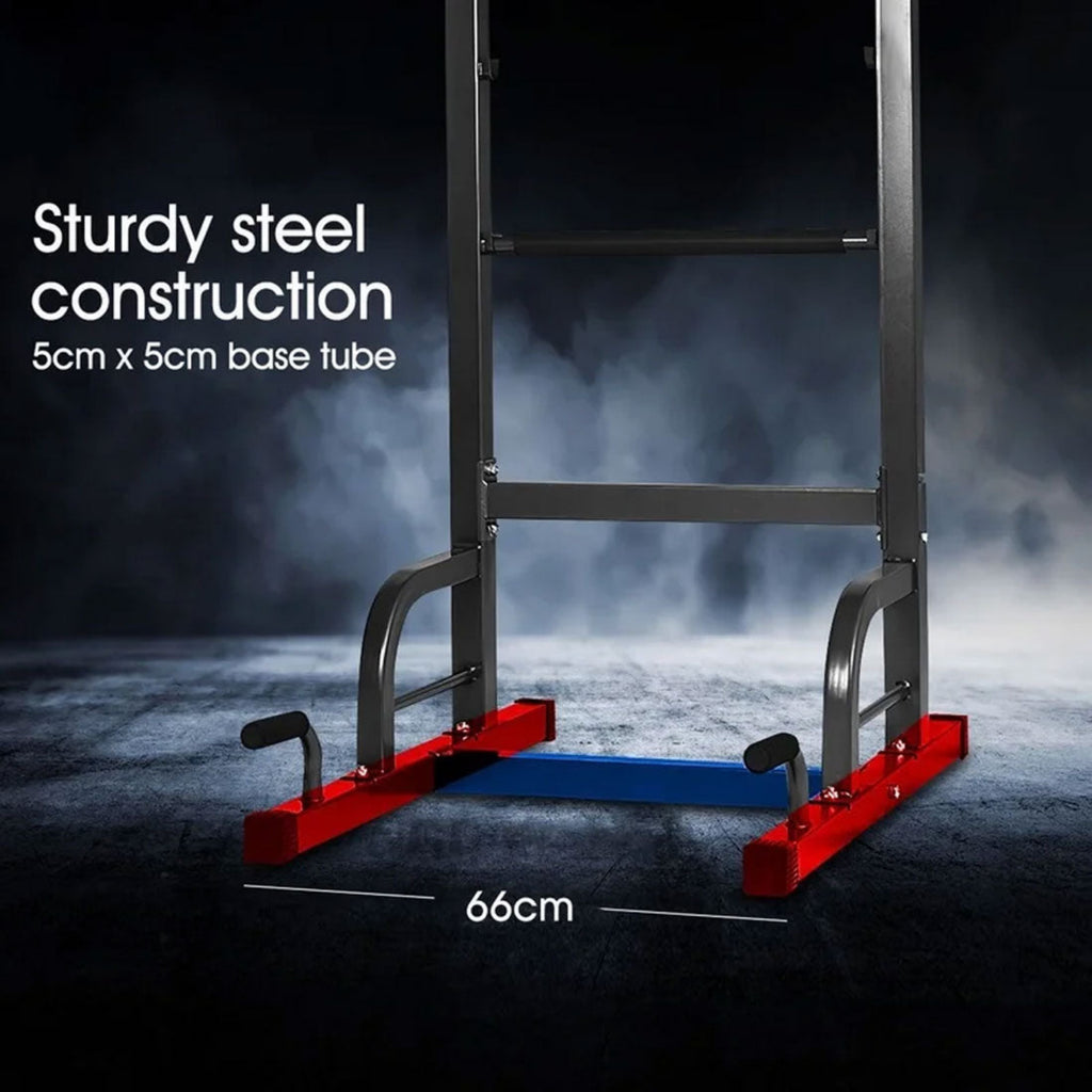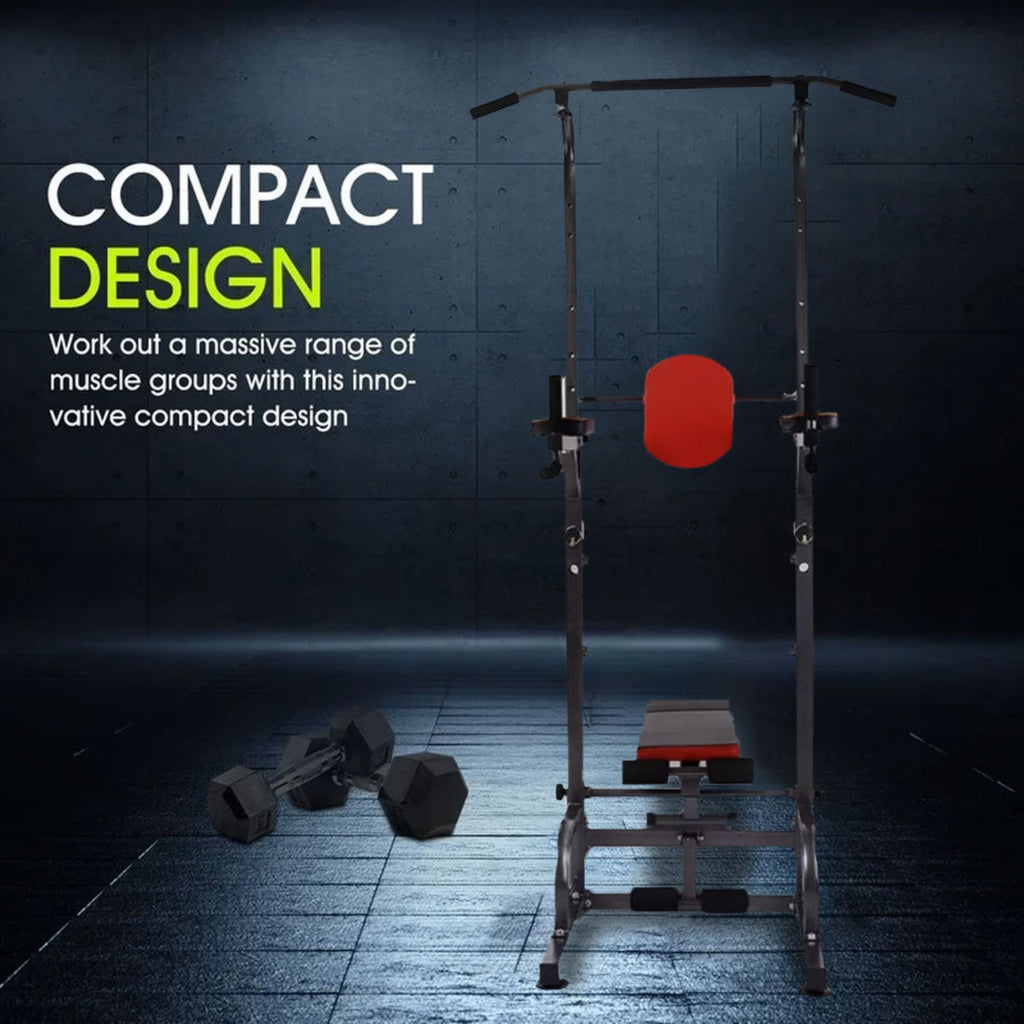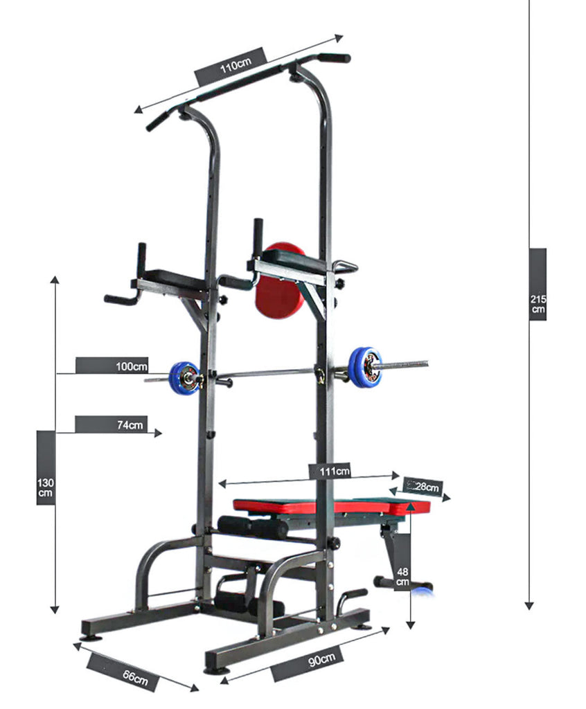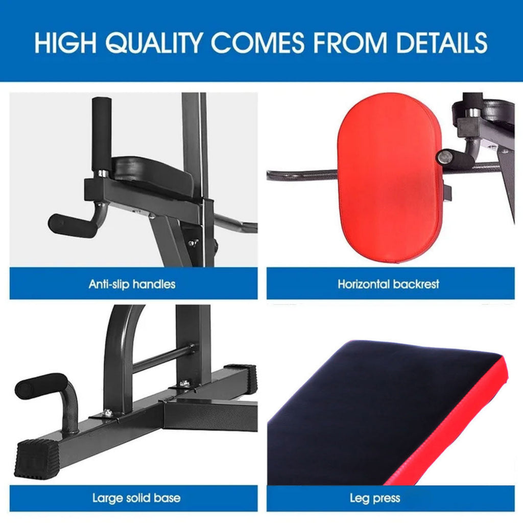Bring the gym to your home with the Multi-function Gym Bench. This 8-in-1 workout station is all you need for a great total body workout, offering a huge range of exercises for your upper body and core. It offers a range of exercises such as bench presses, chin ups, dips, pull-ups, weight lifts, leg raises, push-ups and more. Fact is, there is so much you can workout to with this versatile tower of power to push your body to its limits with results that matter. Constructed from heavy-duty, powder-coated tubular steel, the gym station is durable and strong and features large, non-slip rubber feet that will prevent unwanted movement, high-density and sweat-proof cushioning and padded handles and arm supports for truly safe and comfortable training regimes.