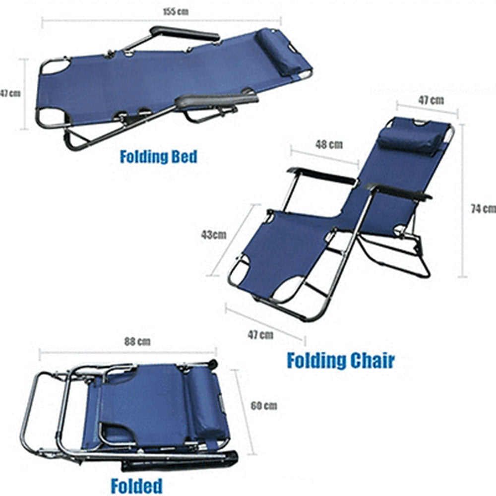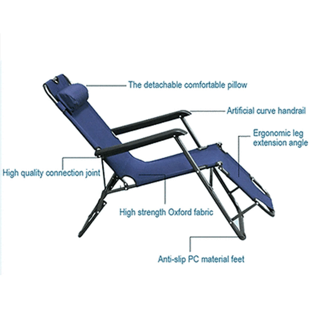 Reclining Sun Beach Deck Lounge Chair Outdoor Folding Camping Fishing Arm Rest - navy