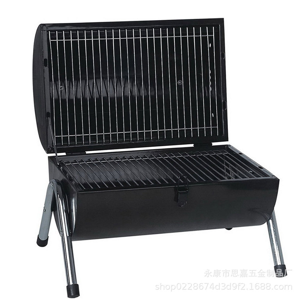 Stainless Steel BBQ Barrel Charcoal Smoker Portable Foldable Barbecue Camping Black