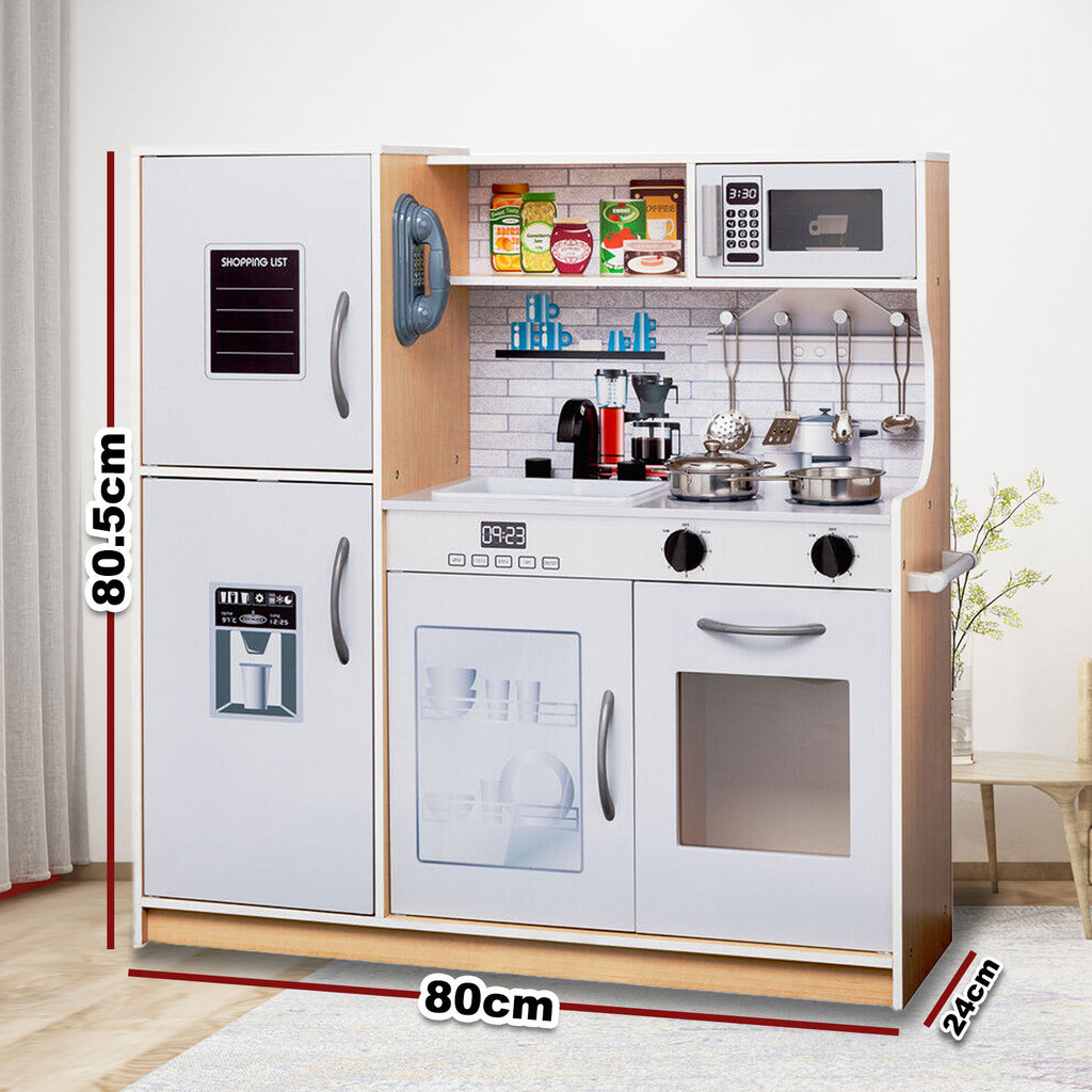 Made of solid MDF material, this toy kitchen sets is stable and sturdy for long service life. What’s more, the equipped anti-toppling device attaches the kids play kitchen to the wall tightly, avoiding accidental falling.