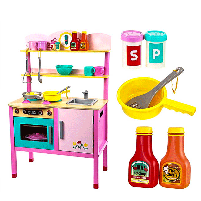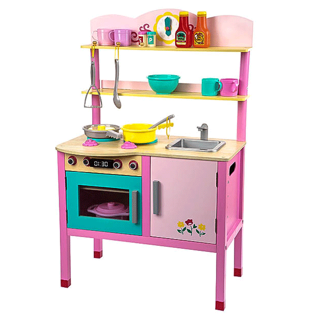Featuring a full assortment of all the tools a budding chef needs, this Kitchen will provide your little boy or girl with hours of entertainment. Be it alone, with friends, or alongside mom and/or dad, our Kitchen Toy will have your child on his or her own cooking show in no time. Studies show that children's imaginative abilities are most effectively employed when they're given freedom within a limited sphere or topic. The Kitchen functions as an open yet regulated space for fostering creativity. Plus, storage and cleaning are a piece of cake!