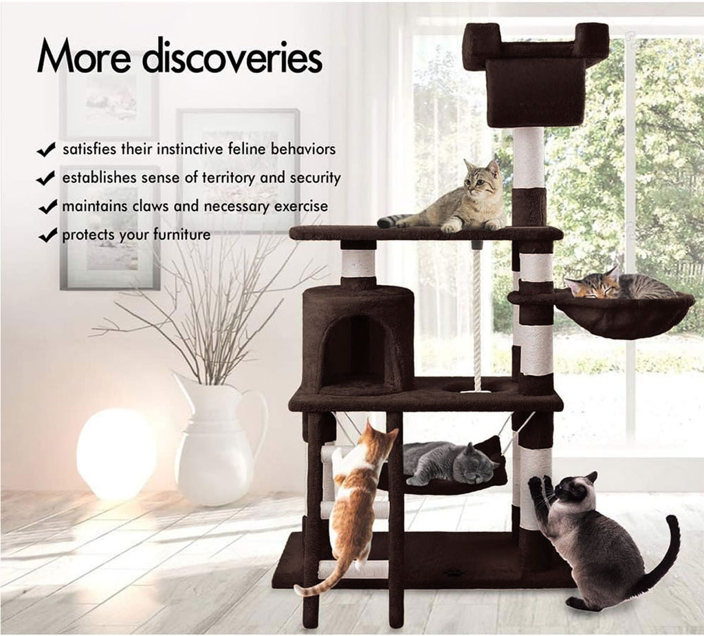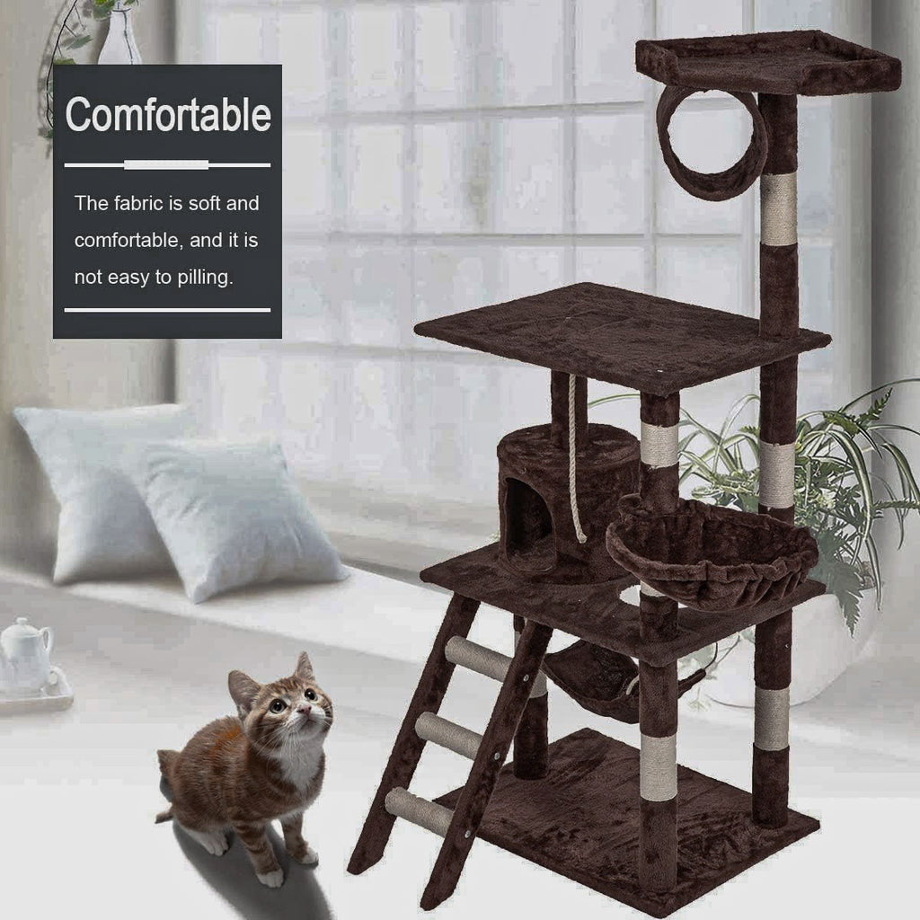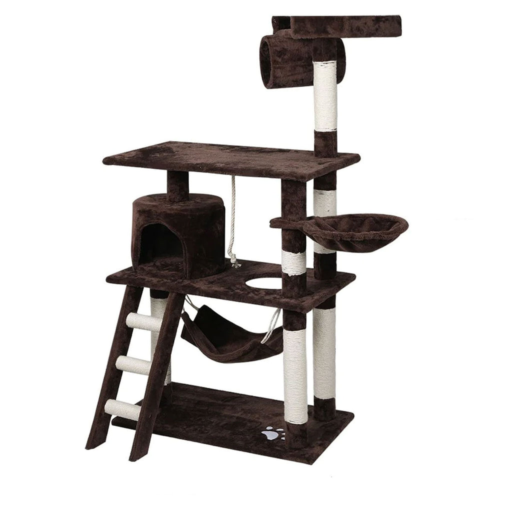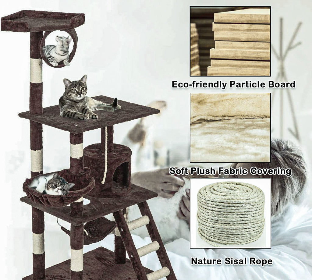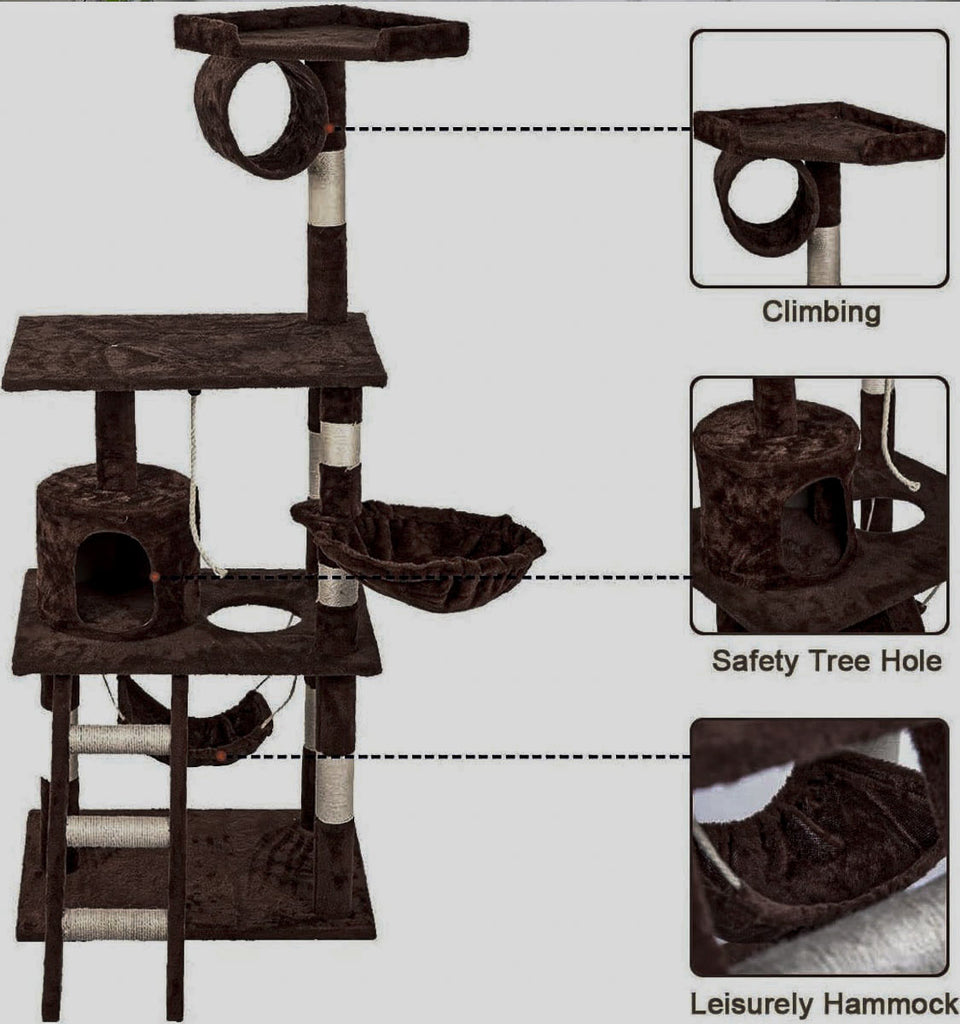 It is absolutely feline wonderland with our cat tree! Built to satisfy the natural instincts of your precious pet, our Cat Tree include a hosts of nooks and crannies for Tom and Tabby to have hours of fun scratching, hunting, climbing, jumping, hopping or simply lounging around. Plus, with its sisal-covered scratching posts, you can rest assured that your furniture will stay cat-free for a very long time. Not least, the tree is upholstered with a plush velvety surface for extra comfort and style. Best of all, the firm base and sturdy construction ensures that the tree remain a durable cat haven with total peace of mind for you. Can we hear a meow to that?