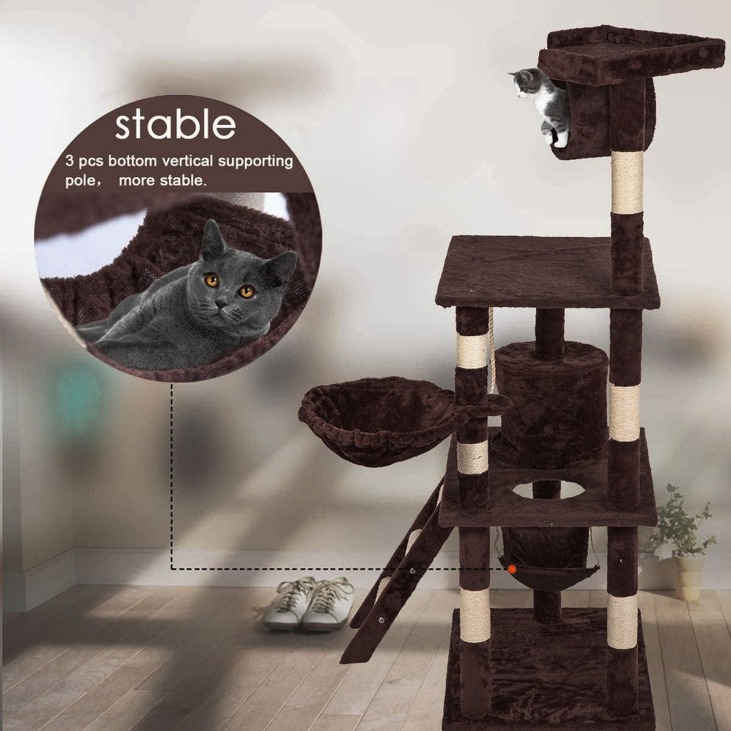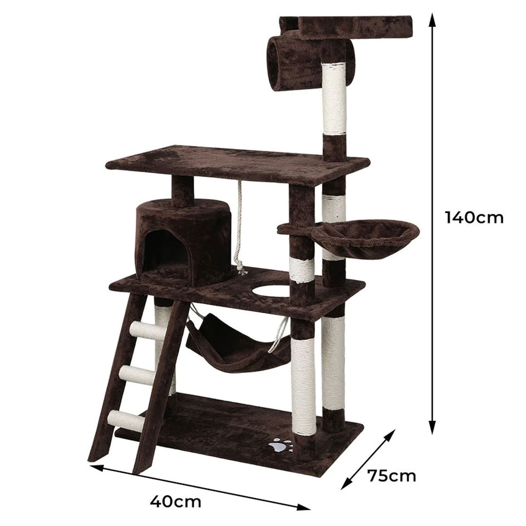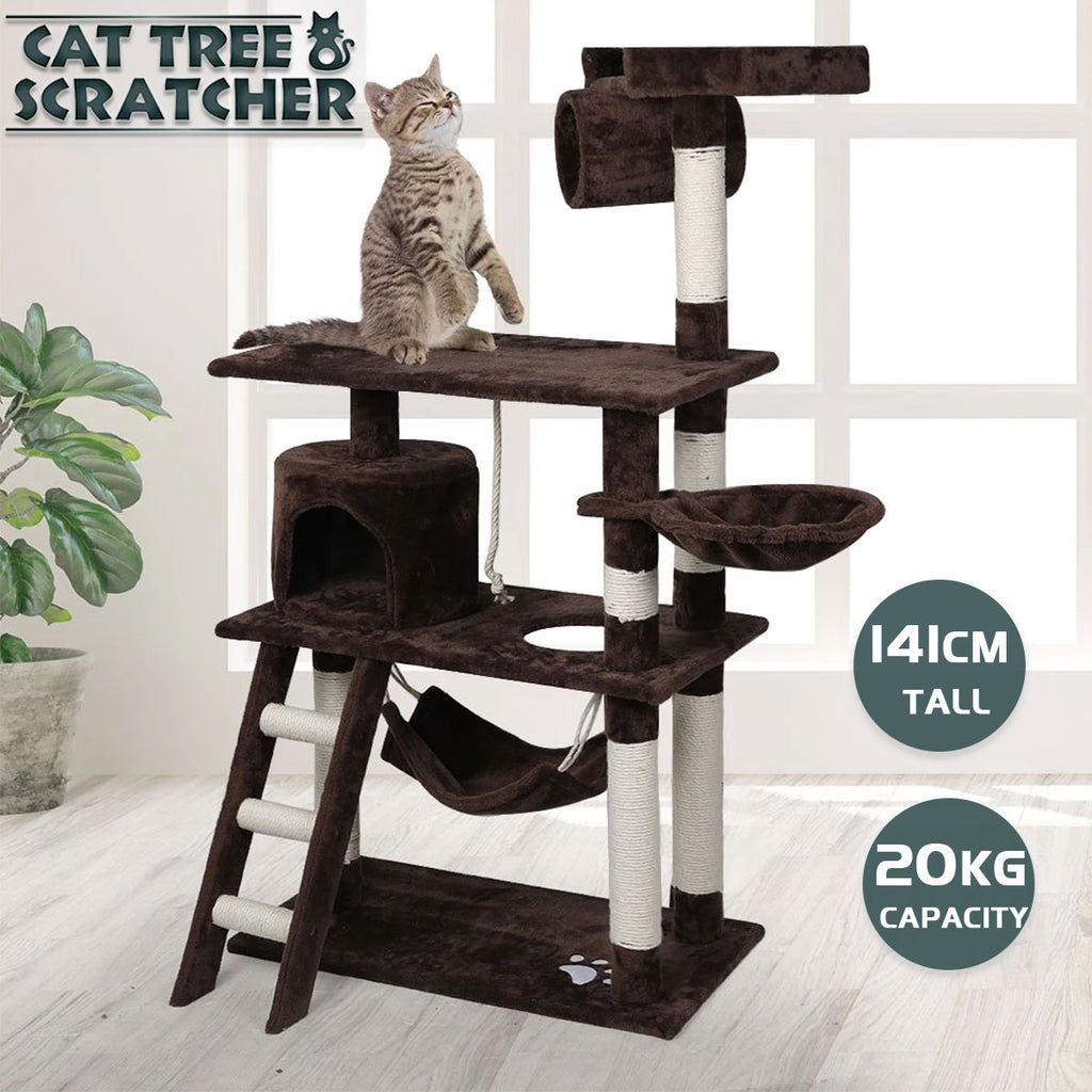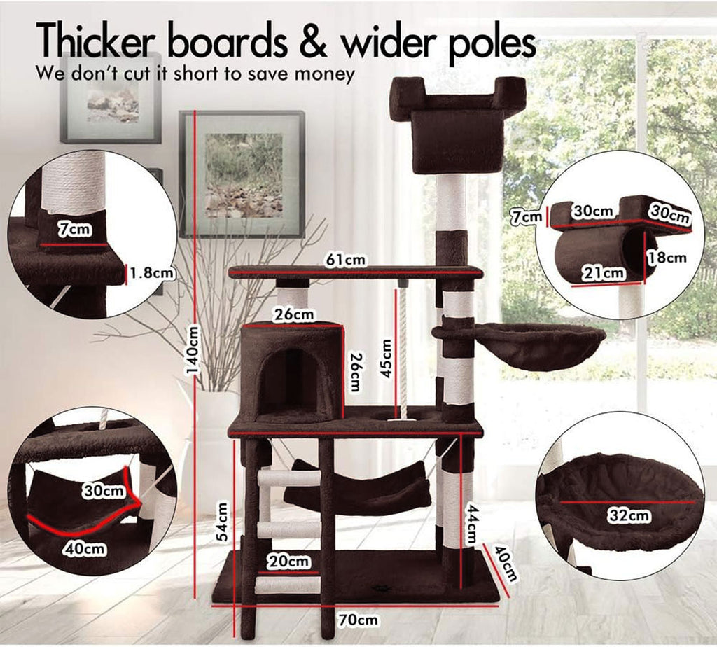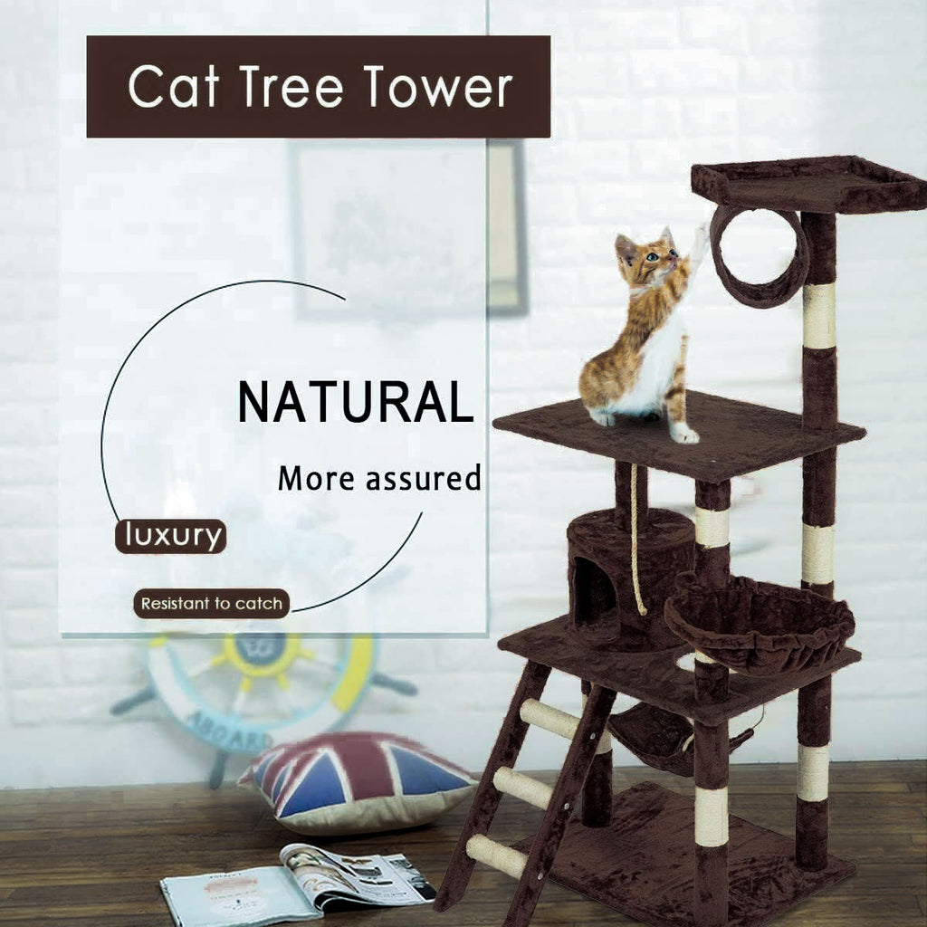 It is absolutely feline wonderland with our cat tree! Built to satisfy the natural instincts of your precious pet, our Cat Tree include a hosts of nooks and crannies for Tom and Tabby to have hours of fun scratching, hunting, climbing, jumping, hopping or simply lounging around. Plus, with its sisal-covered scratching posts, you can rest assured that your furniture will stay cat-free for a very long time. Not least, the tree is upholstered with a plush velvety surface for extra comfort and style. Best of all, the firm base and sturdy construction ensures that the tree remain a durable cat haven with total peace of mind for you. Can we hear a meow to that?
