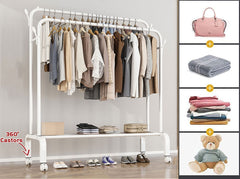 This Portable Multi-Function Clothes Rack will come in handy for storing or drying clothes. Keep your clothes organized with this portable clothes rack - the rail has removable castor wheels so you can move it around easily and quickly, ideal for taking with you on the go! Sturdy and durable, this multifunctional clothes rack will hold a large load of clothes with its strong stainless steel frame and two cross bars at the bottom to prevent it from swaying. The mobile design makes this rail the perfect storage solution for your clothes.
