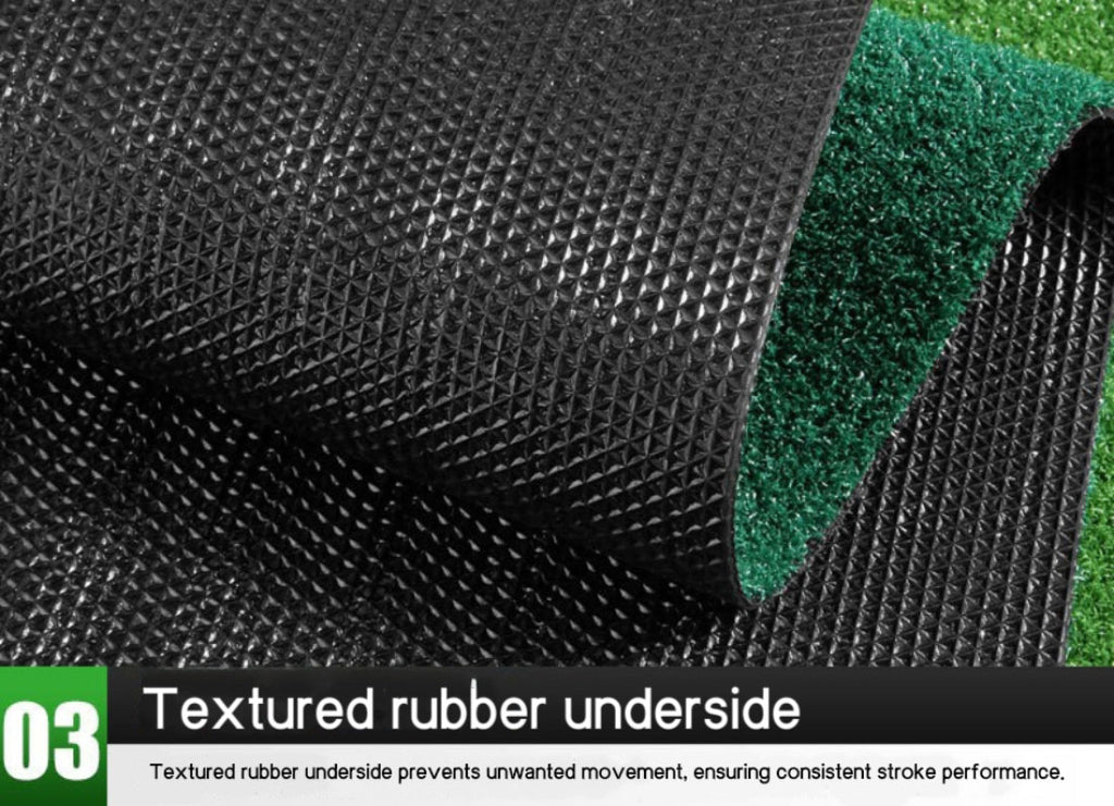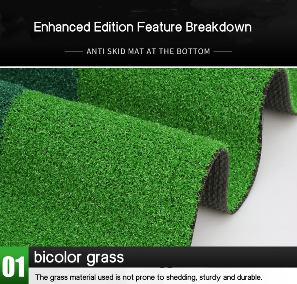 Elevate your golf practice with the Realistic Golf Simulator Training Mat, designed to replicate the feel and challenge of a professional golf course. Crafted from 7.6 mm thick woven nylon turf, this mat delivers a smooth, durable surface for realistic putting and swing practice. Beneath the turf lies rubber padding for shock absorption, while the 10 cm elevated base mimics slopes found on real courses, perfect for refining your short game under varied conditions.