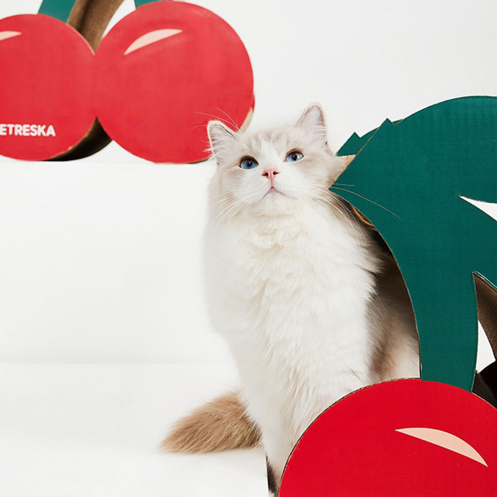 The Vetreska Cherry Cat Scratcher presents the shape of a cherry. It satisfies your cat’s daily scratching and pawing needs and fits for its nature of hiding. The scratcher gives cats an alternative to scratching the carpets or furniture, and meanwhile, improves nail health. Made from upgraded corrugated cardboard, the inner scratching pad is durable.